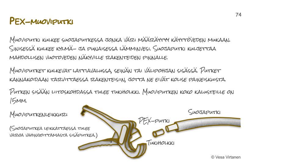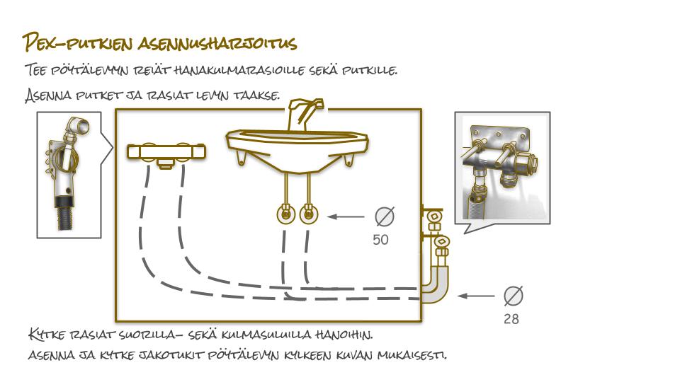 PEX-putket Harjoitus: Putkita ja kytke kalusteet muoviputkilla pöytään. Teoria: Tutustu PEX-putken teoriaan ennen harjoitusta.